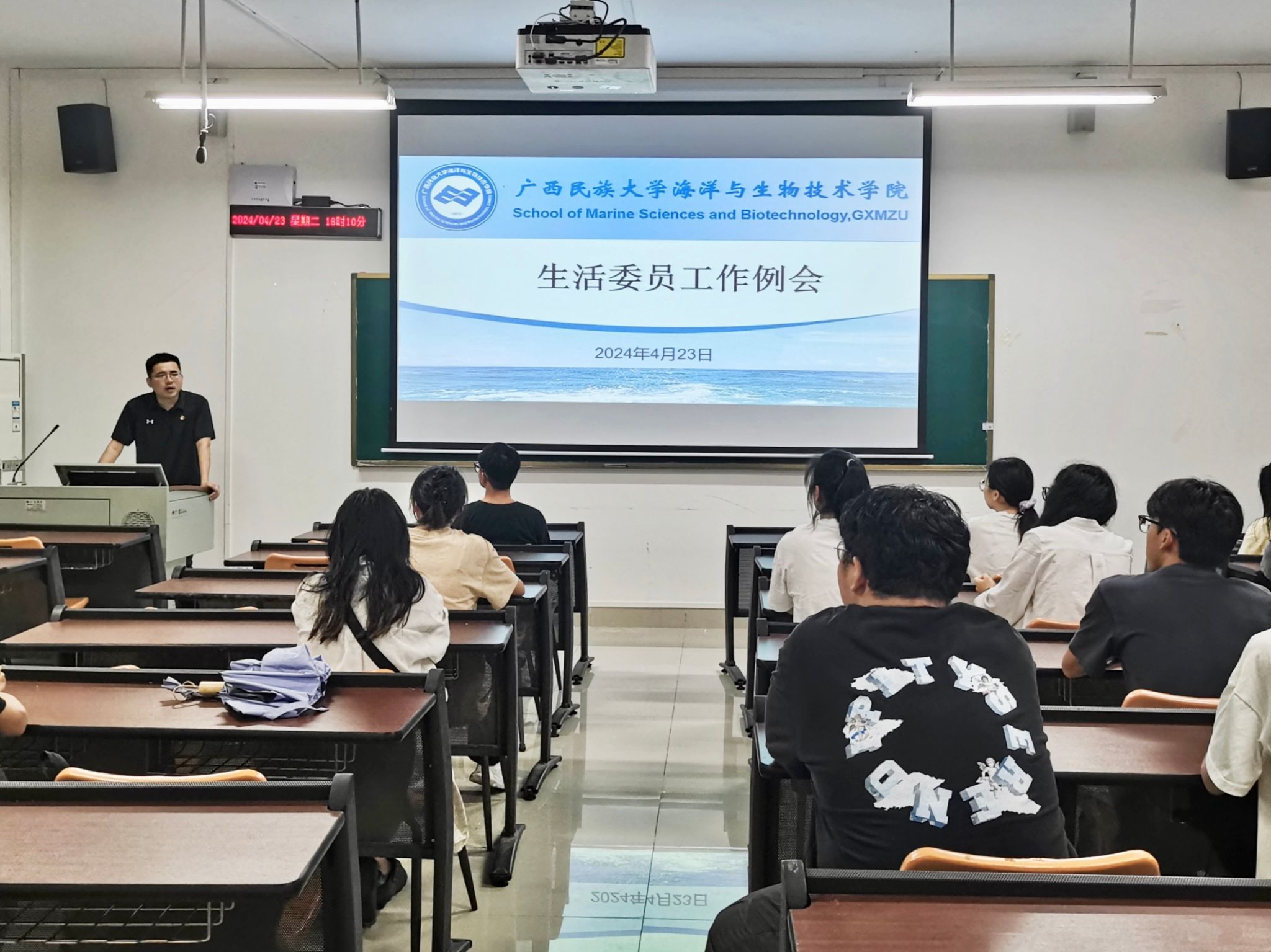 为扎实做好预防春季传染病管理工作,严格落实学院晨午检上报制度,4月23日下午,fun88乐天使于明德楼226教室召开生活委员工作例会,本次会议由辅导员林南新主持,各班生活委员参会。