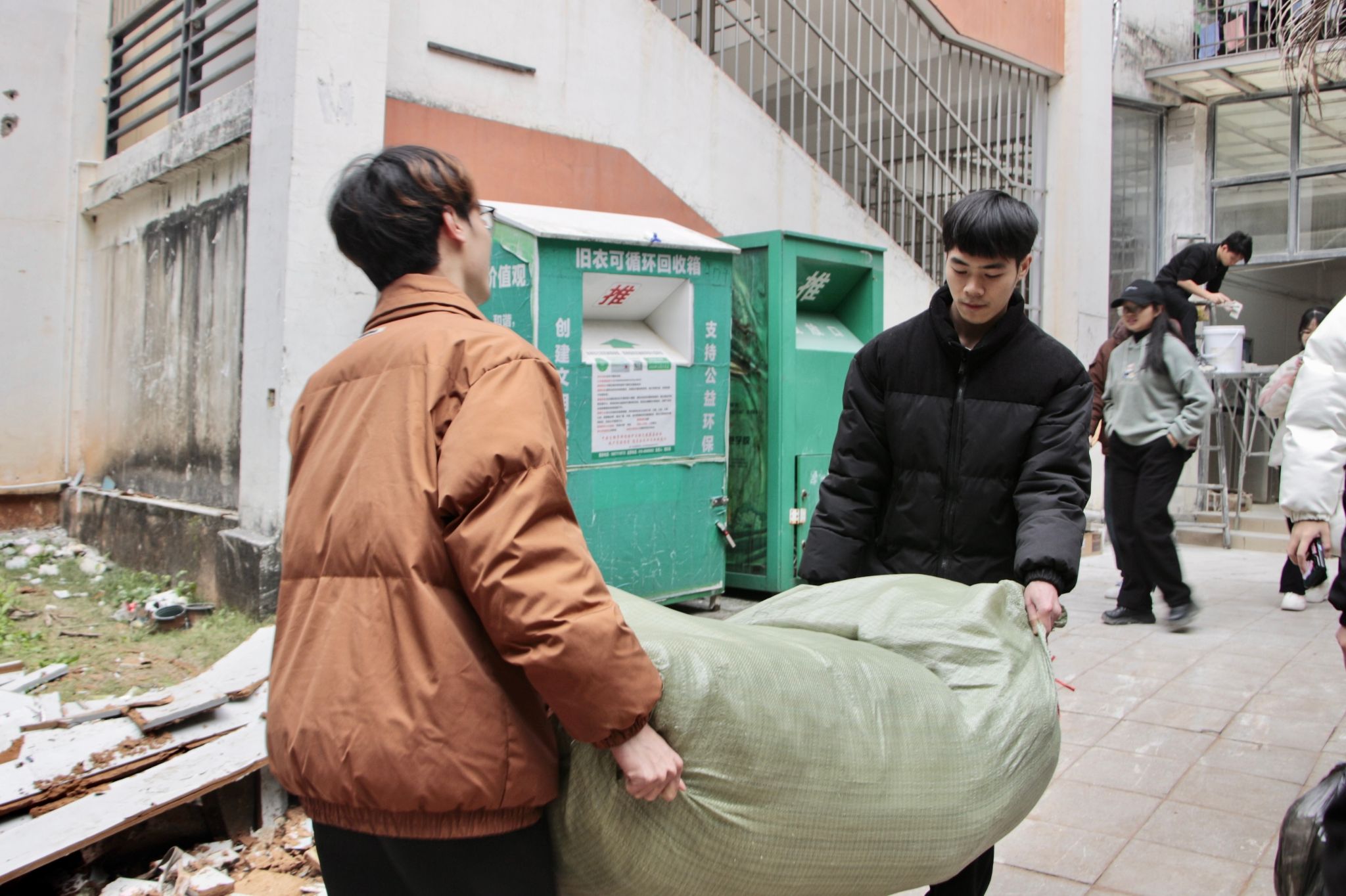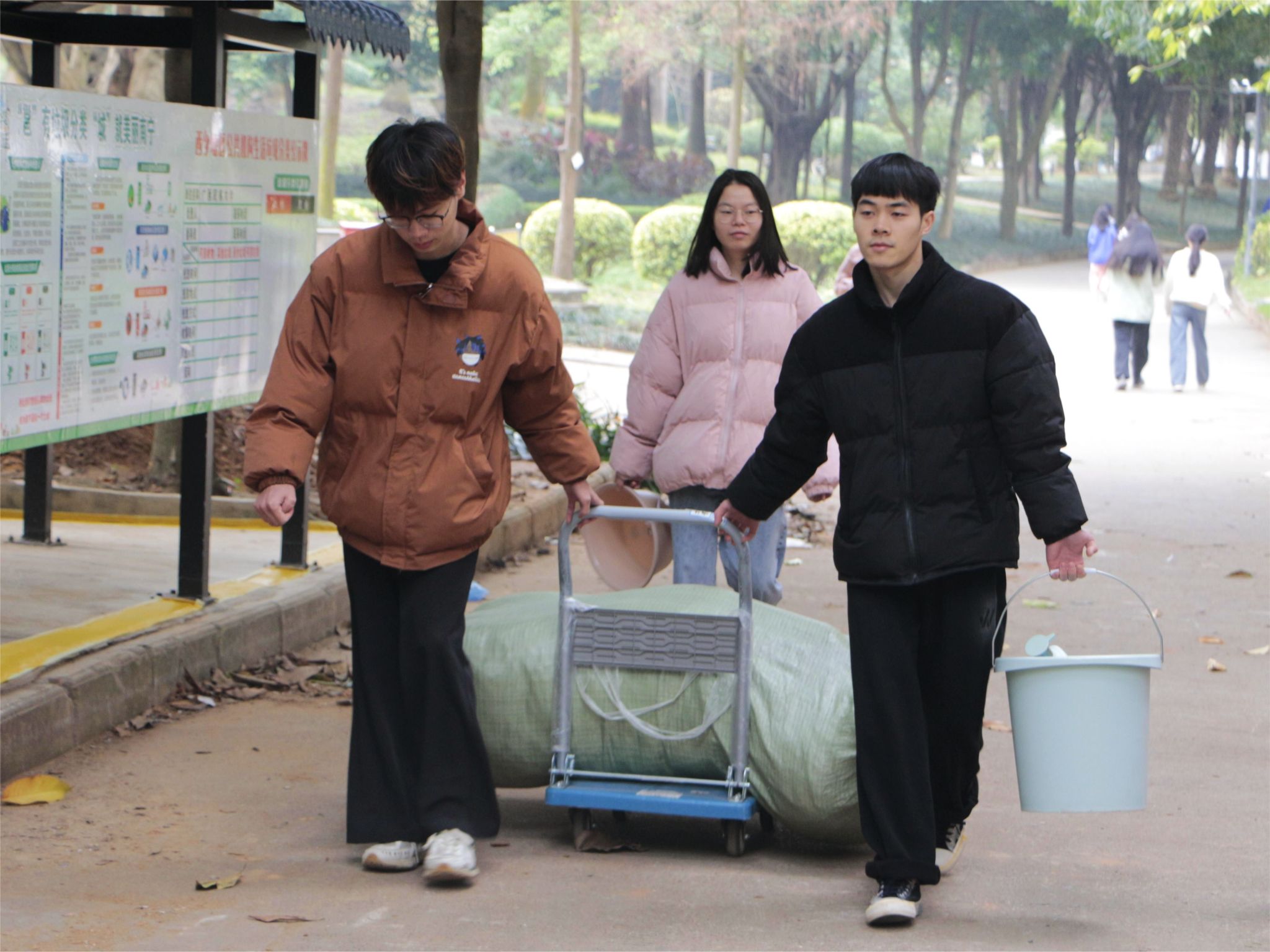 熙熙攘攘的校园里,随处可以看到骑着三轮车的志愿者们在帮助同学运送行李。“你有多少行李,我来帮你打包登记吧!”志愿者们看见学生有多个包裹、物件的学生,主动上前询问,帮助整理打包,在外包装上注明姓名、班级、宿舍号等相关信息和搬运行李。志愿者们在搬运过程中轻拿轻放,以确保每一位同学的行李都能完好无损地回到宿舍。