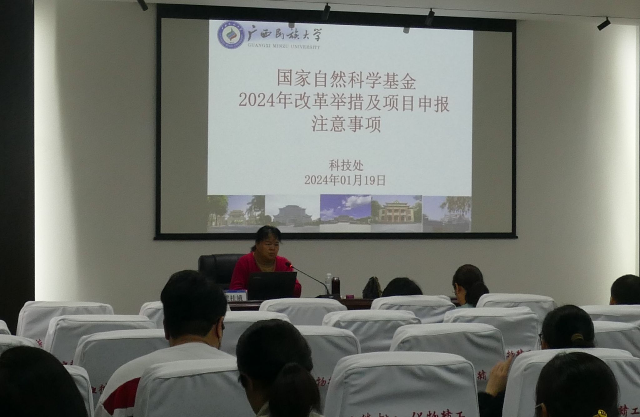 梁桂娥就国家自然科学基金2024年改革措施及项目申报注意事项做了详细说明,包括项目支出预算、资助计划安排、项目形式审查和项目评审等内容。此外,梁桂娥副处长还对《关于加强高校有组织科研推动高水平自主自强的若干意见》、《关于进一步加强青年科技人才培养和使用的若干措施》等文件精神进行了宣讲和解读。