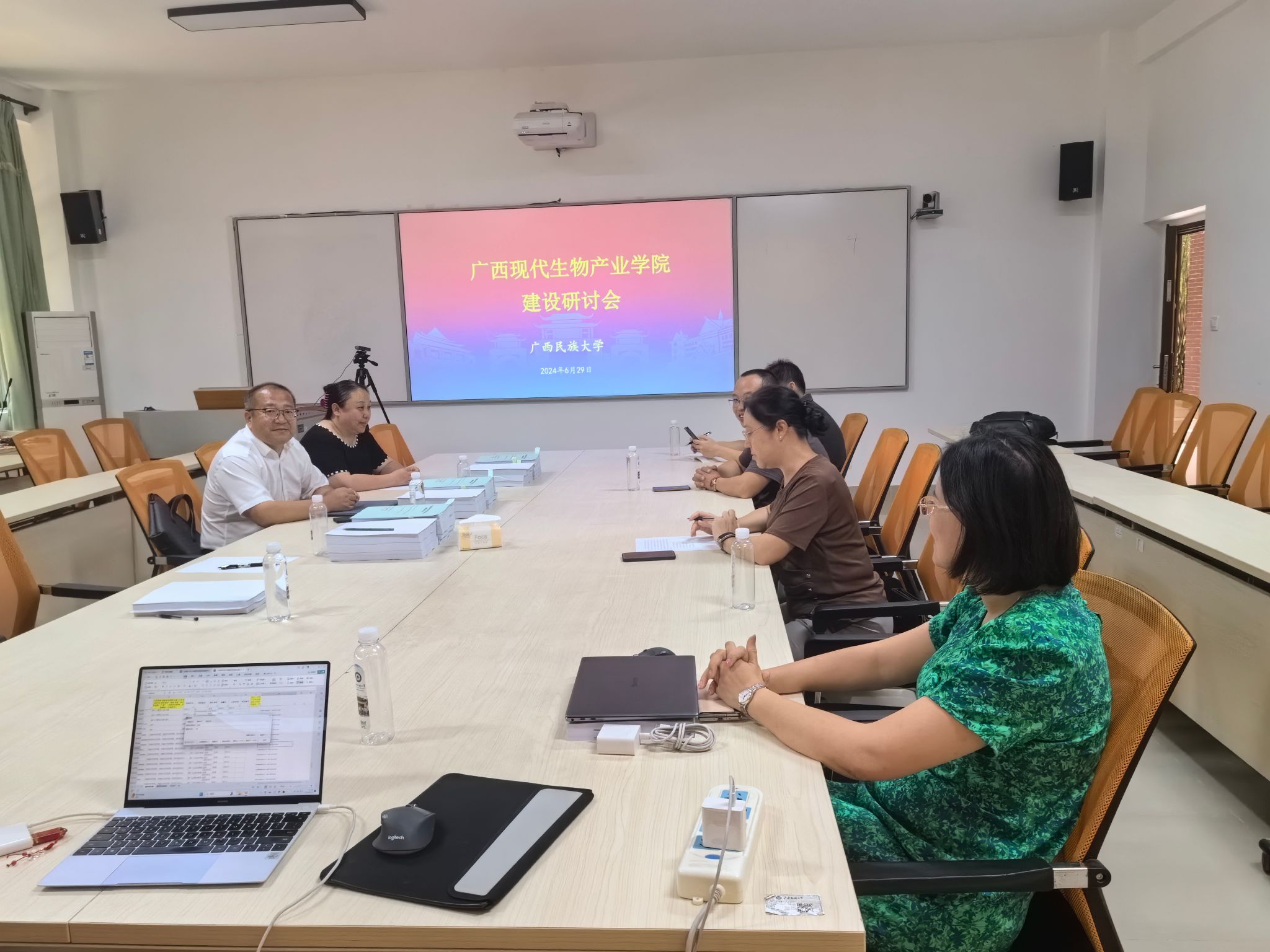 为推进广西现代生物产业学院建设,提高产业学院科研水平和成果转化能力,更好地为地方生物产业发展服务, 2024年6月29日,fun88乐天使于明德楼123会议室召开广西现代生物产业学院建设研讨会,会议由王一兵副院长主持,广西现代生物产业学院院长姜明国、相关行业企业专家和学院教师代表出席本次会议。