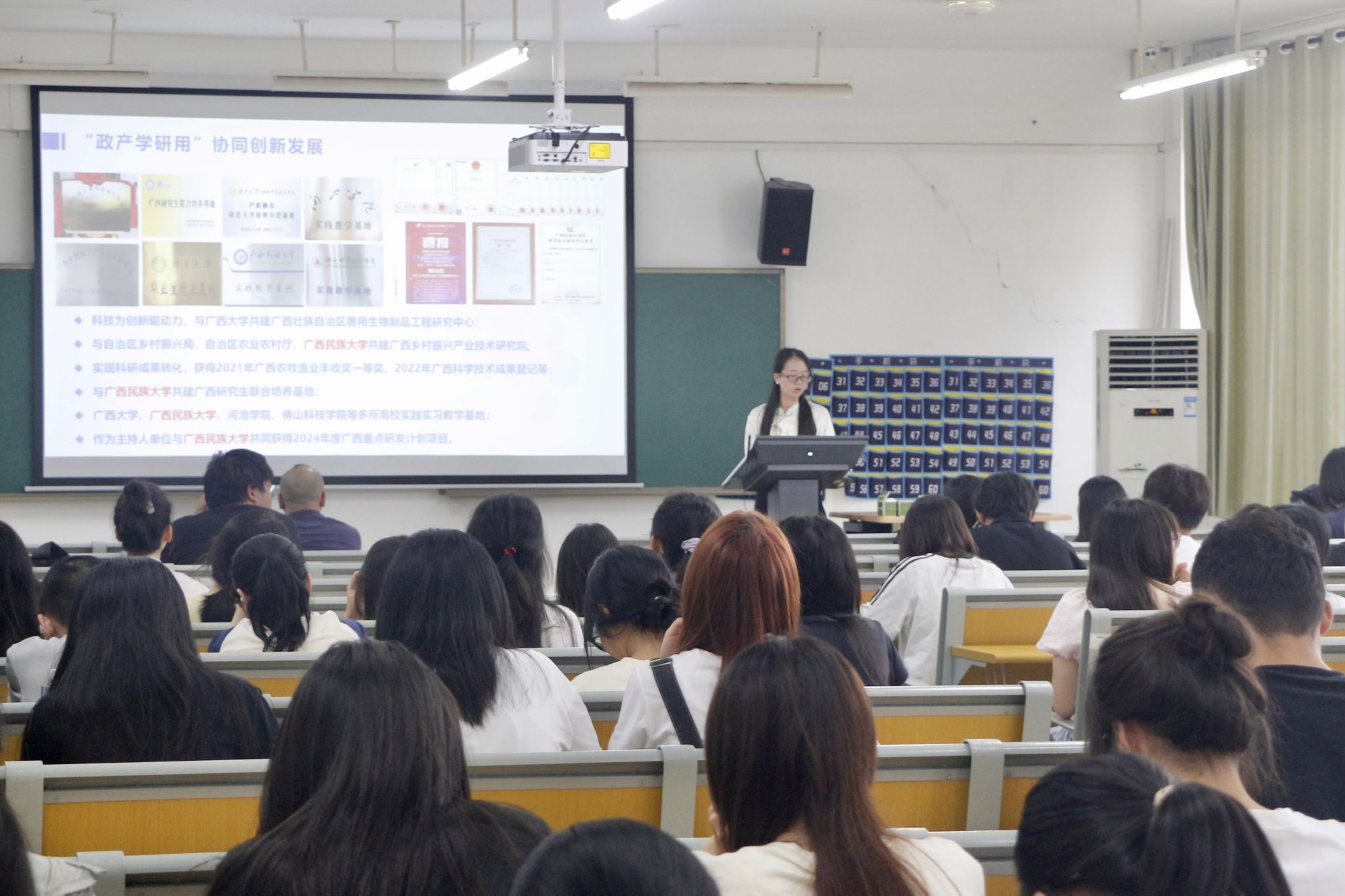 为帮助fun88乐天使学子明确就业现状,积累求职经验,提高就业竞争力。6月5日下午,fun88乐天使特邀广西悦牧生物科技有限公司于明德楼524教室开展2024届毕业生就业宣讲会,本次宣讲会由悦牧公司人事综合部主管覃娟主讲,生物技术系主任许剑,生物技术系主任丰景,生物工程系主任吴仁智,实验室主任张红岩及2020级和2021级部分学生参加本次宣讲会,会议由许剑主持。