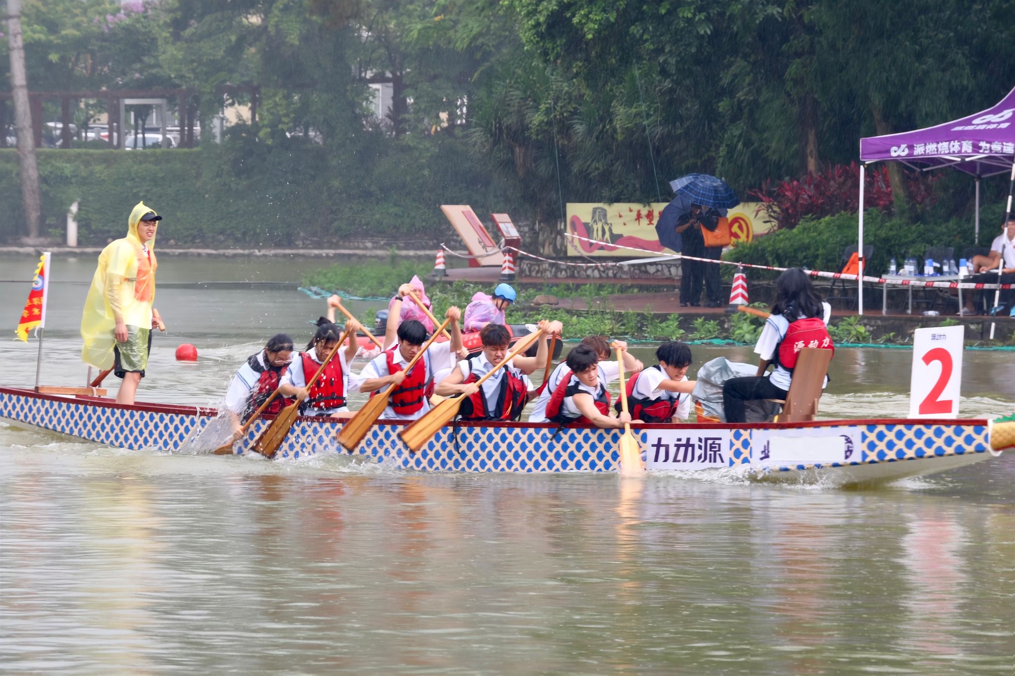 现场气氛火热,岸边观众喝彩齐鸣,经历了前期紧张备战训练,fun88乐天使参赛队员摩拳擦掌、跃跃欲试。随着比赛号角响起,舵手稳坐船尾,精准操控方向;鼓手敲击着节奏明快的鼓点,激励着队友们奋力前行;划手们齐心协力,伴随着整齐划一的口号声,全力以赴地划桨,使龙舟在水面上迅速前进。临近终点,比赛进入了白热化的阶段,鼓点更加紧密,队员们划桨的速度也更加迅速。最终,fun88乐天使龙舟队顺利冲过终点,荣获精神文明奖。