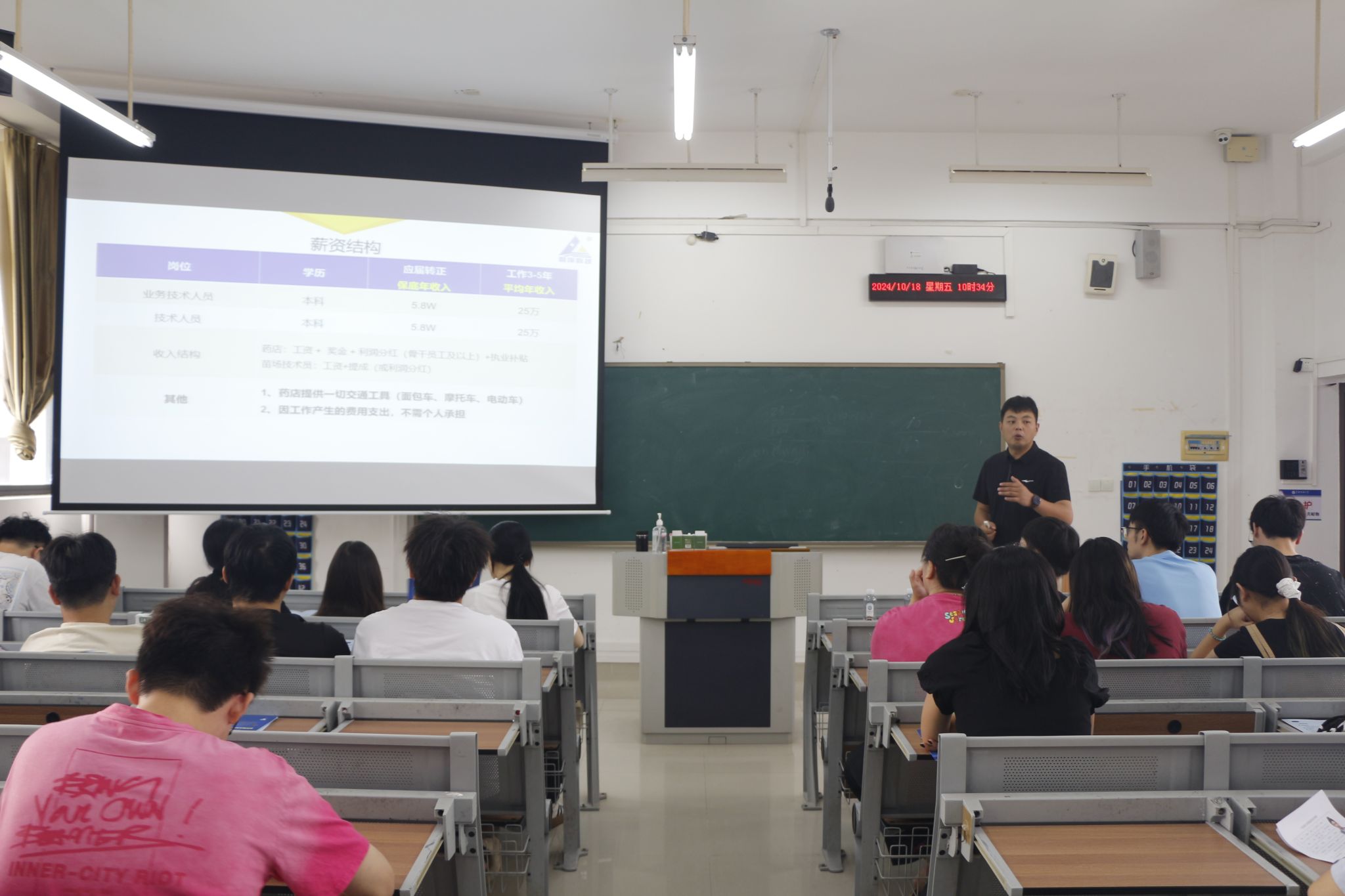 张子刚通过生动的讲解和丰富的案例,详细介绍了利洋水产科技股份有限公司的发展历程、企业文化、业务范围以及未来发展规划。他详细介绍了水产行业的重要性及公司发展情况,公司的研究领域包括药物检测、疾病诊断和饲料研发,旨在帮助养殖户提升产量。他就公司的岗位需求、入职条件、人才政策、业务范围、发展前景以及职业晋升路径等方面展开叙述,为同学们绘制了一张详尽的职业发展蓝图。