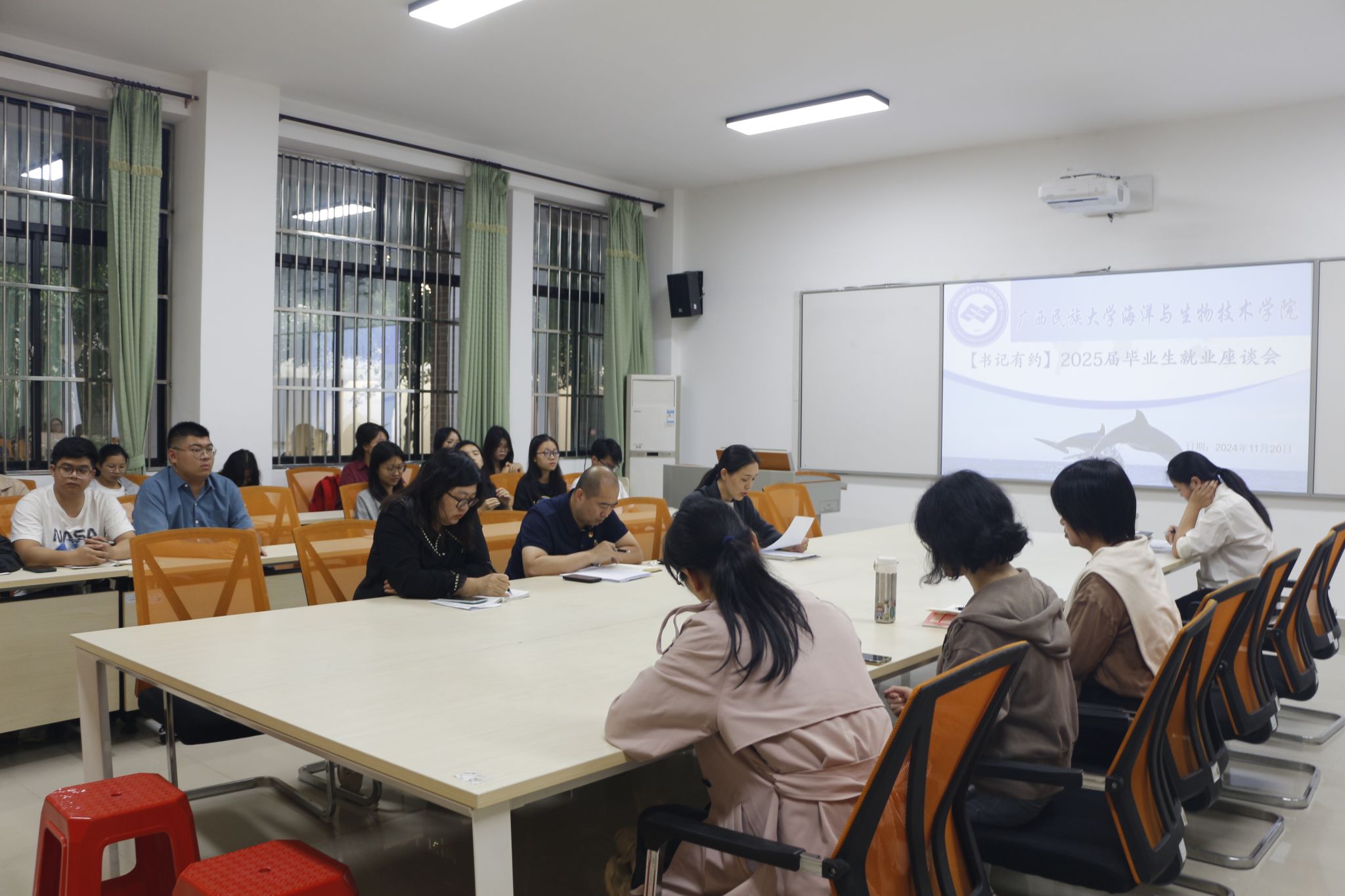 为全面了解fun88乐天使2025届毕业生的求职进展,帮助毕业生们解决在就业工作中遇到的困难,进一步推动毕业生尽早就业,11月20日下午,fun88乐天使于明德楼123会议室召开“书记有约”2025届毕业生就业座谈会,学院党委书记刘红全,党委副书记门媛媛,副院长张琴,2025届毕业班班主任及毕业生代表参加此次座谈会。
