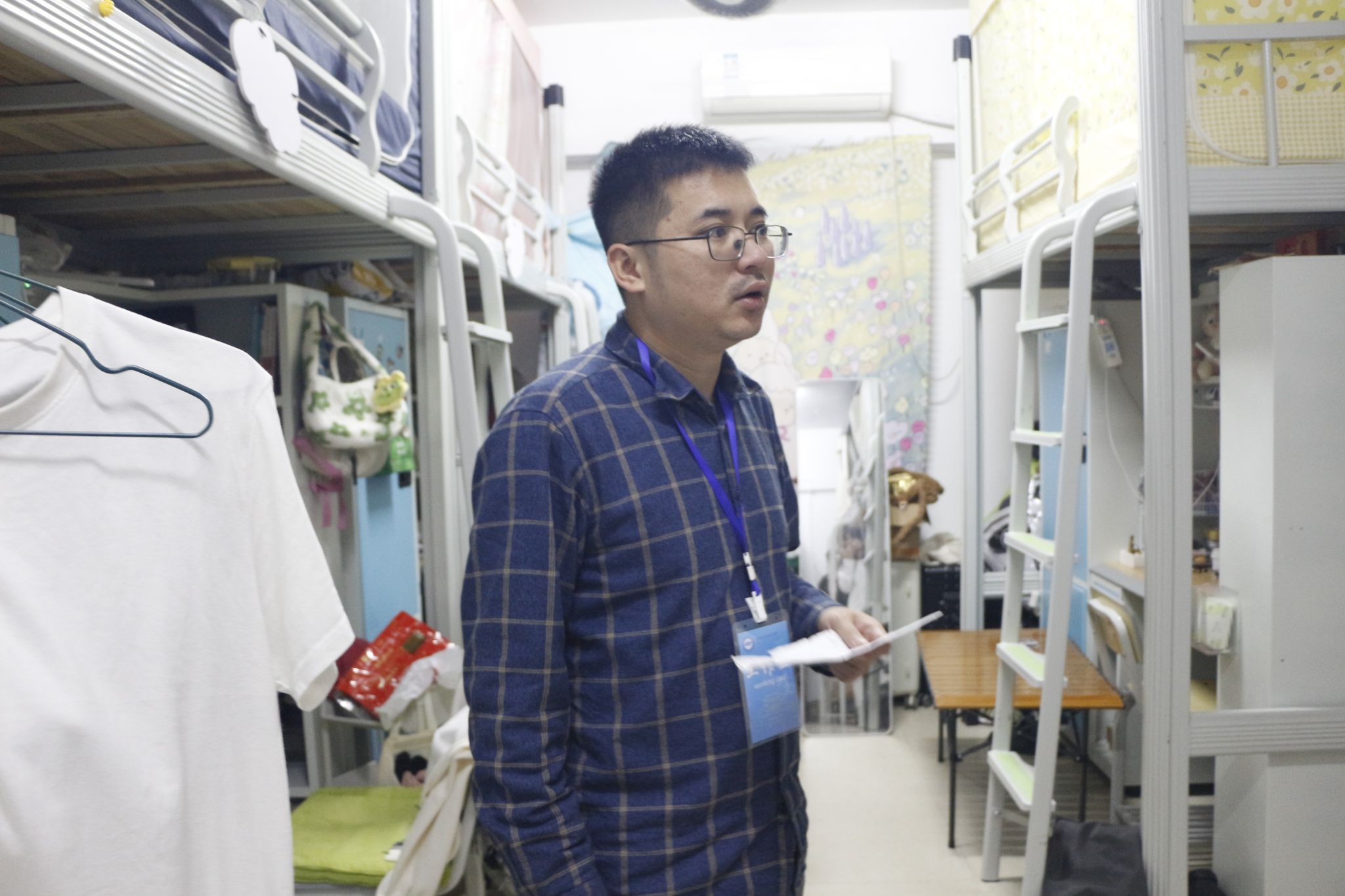 在检查过程中,林南新重点排查了学生宿舍内部可能存在的用电线路安全隐患、大功率电器的使用等情况,并现场对同学们进行整改指导和消防安全教育。同时,林南新与同学们进行亲切交谈,耐心叮嘱同学们要养成良好的生活习惯,优化宿舍生活和学习环境,严格遵守学校用电安全、防火防盗等规章制度,把宿舍安全牢牢摆在第一位,并提醒同学们冬季来临,注意防寒保暖,适当锻炼身体提高身体素质,预防流感。