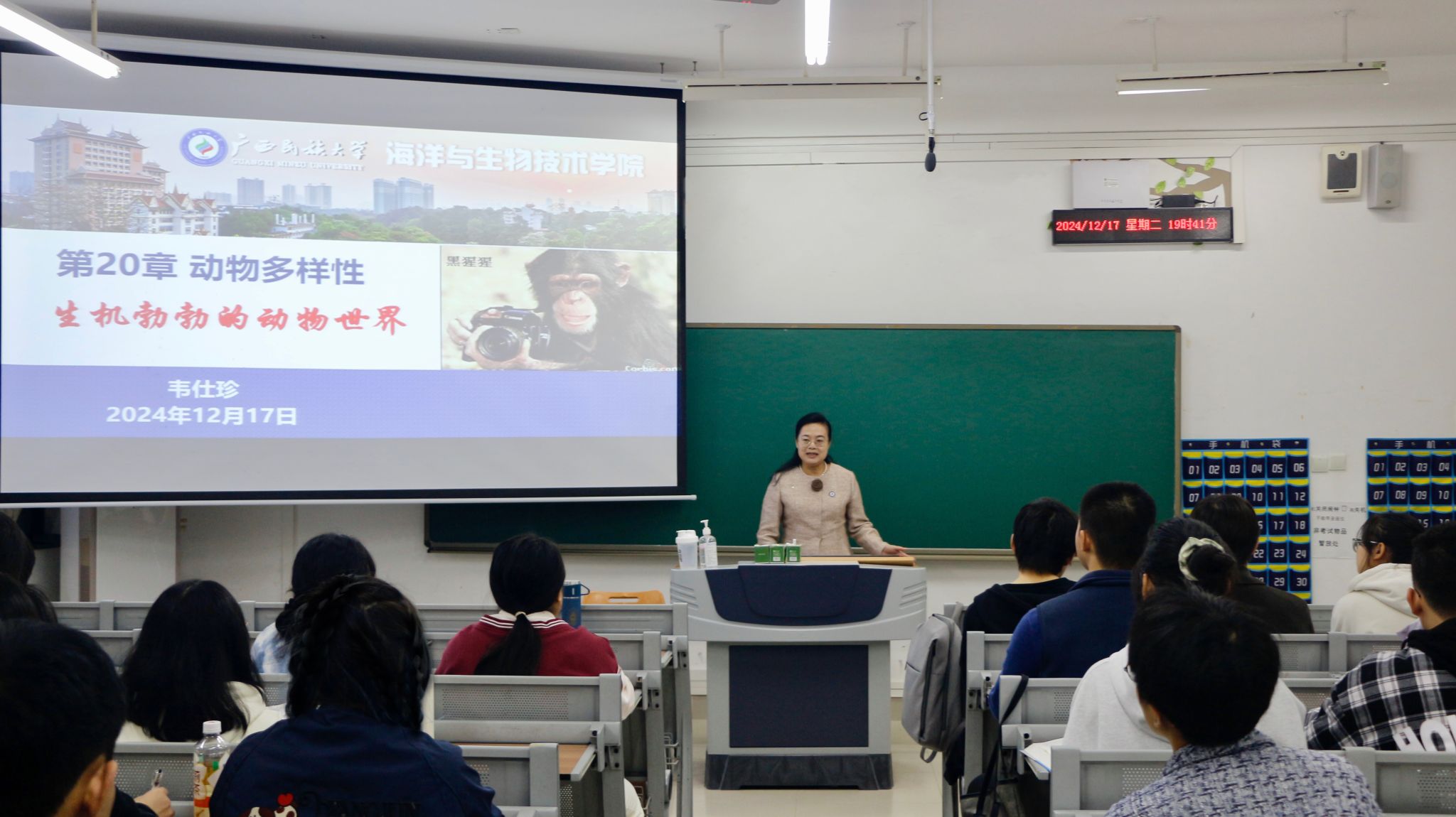 12月17日晚,学校党委副书记、校长韦仕珍深入课堂教学一线,于明德楼321教室为fun88乐天使2024级生物工程01班学生讲授了一堂别开生面的《普通生物学》公开课。
