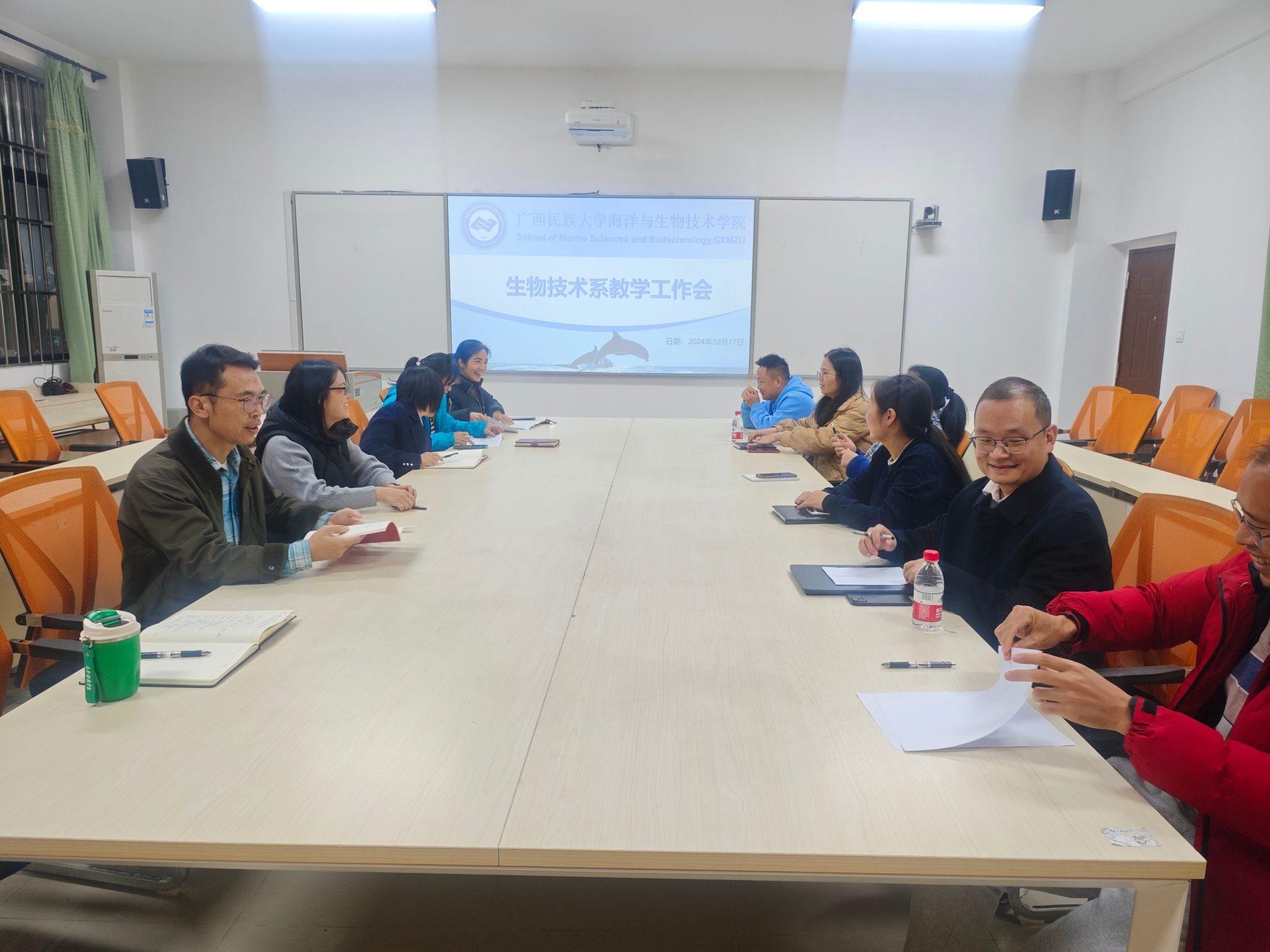 2024年12月17日,生物技术系在明德楼123会议室召开教学工作会,生物技术系全体专任老师出席本次会议。会议由生物技术系主任许剑主持。
