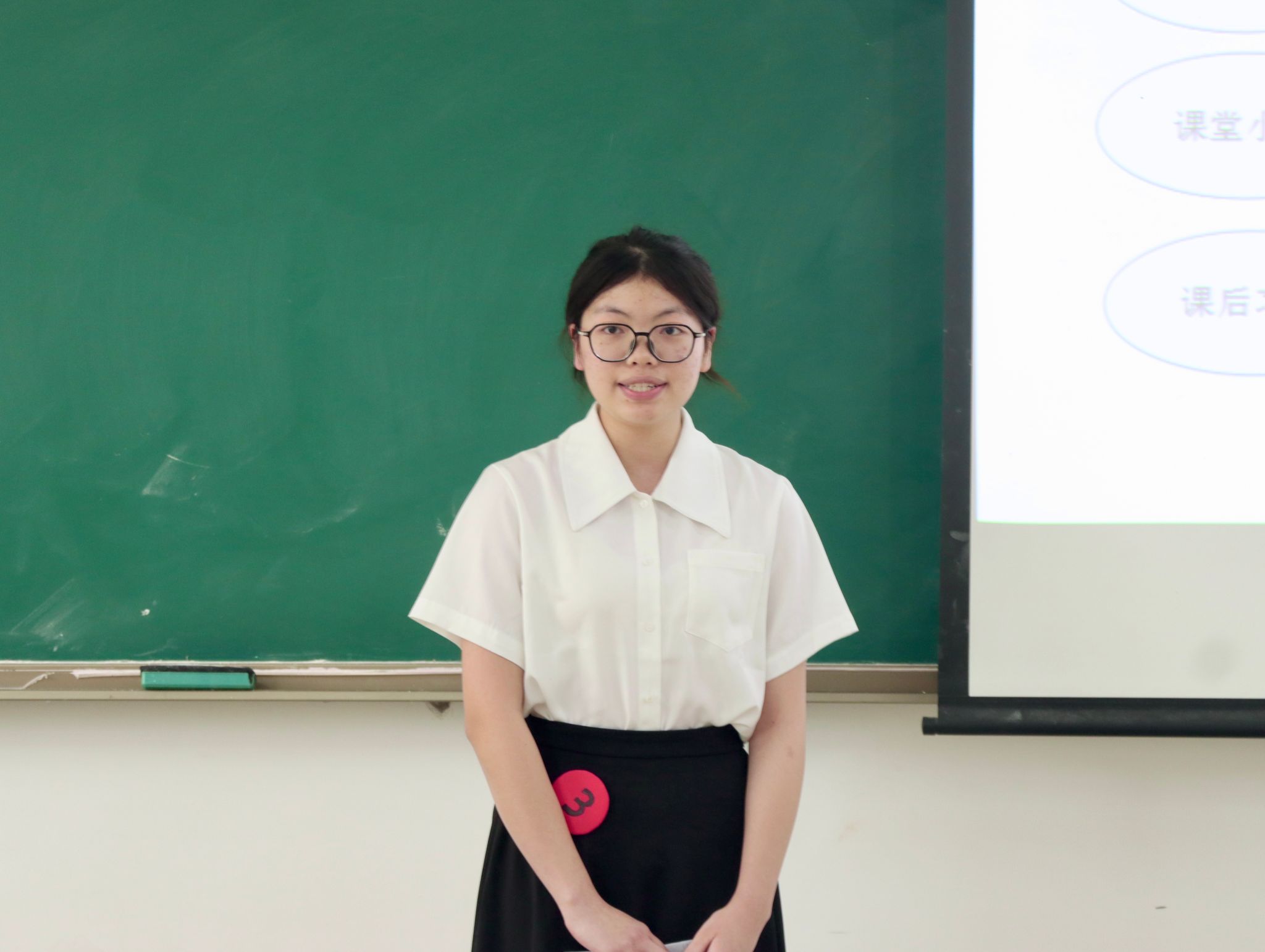 两组选手围绕教学设计、说课、模拟上课和板书四个板块展开PK。在教学设计环节,选手们比拼的是谁更用心钻研教材,谁的教学设计更贴近教学目标。说课环节,要求选手们在规定时间内依据教学目标和学生特点选择合适的教法、学法,比拼的是教育理论基础是否扎实、教学设计能力是否过硬。在模拟授课环节,2024级生物技术04班刘思婧向大家生动讲解了哺乳动物的身体结构,她利用动物模型照片辅助教学,并通过设置情景提问引导学生们思考,她的板书条理清晰、图文并茂,展现了出色的教学能力。