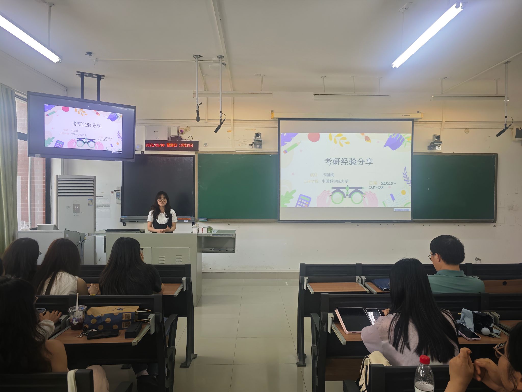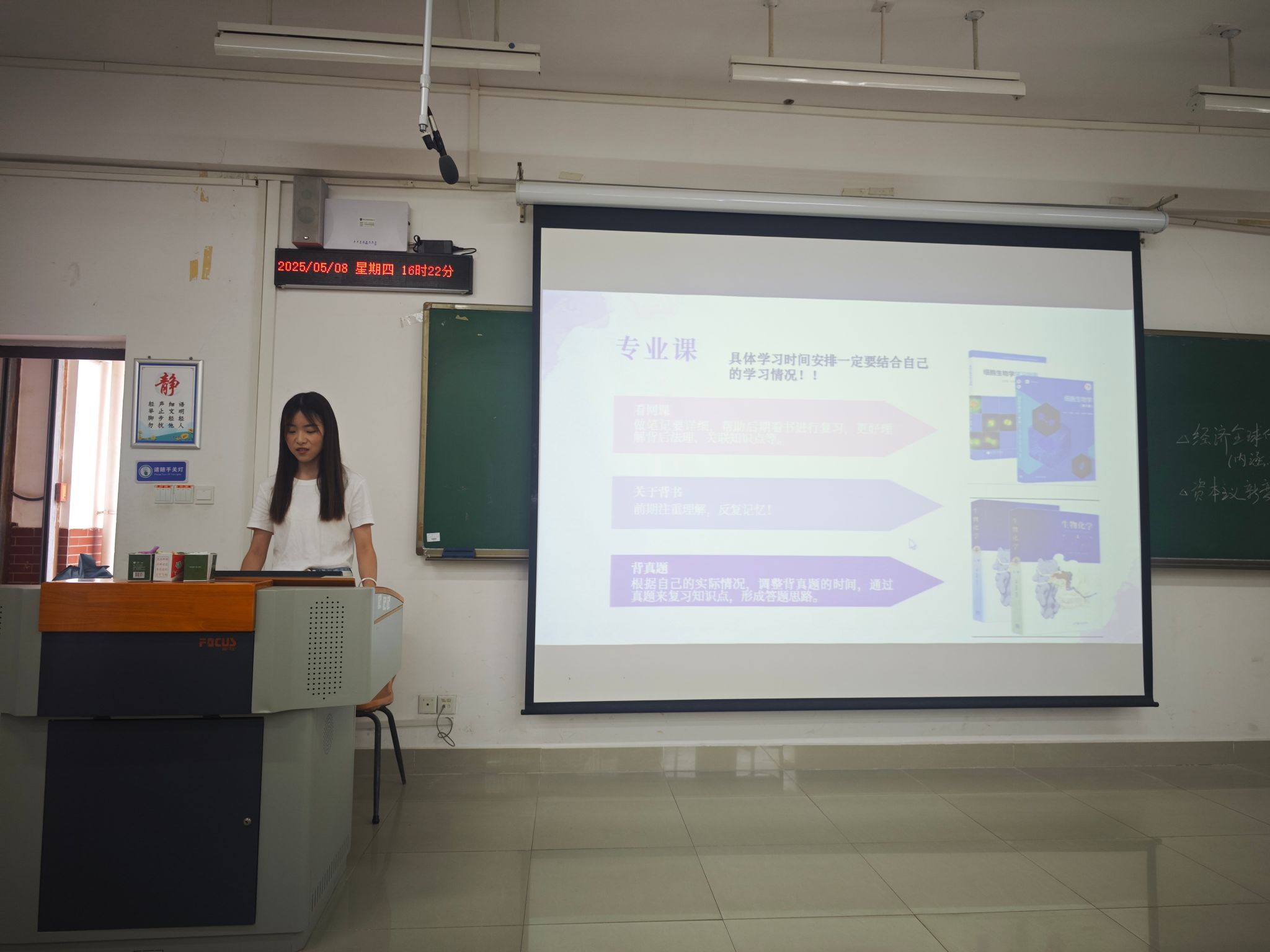 会上,2025届考研升学成功的学生代表应邀作考研经验分享。同学们积极发言,围绕择校、实习、备考等问题与老师们以及学生代表进行了深入交流,现场互动热烈,氛围浓厚。