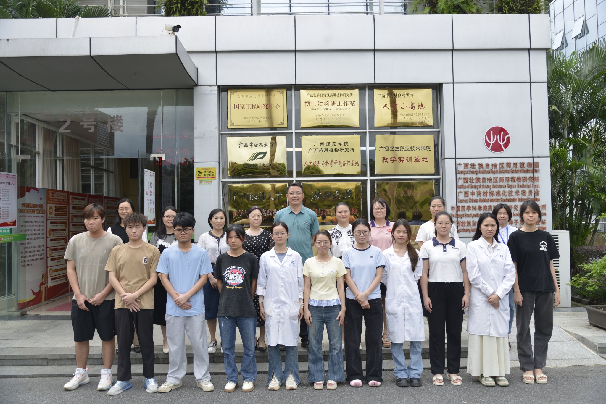 会后,调研组一行实地考察了科研实验室、珍稀濒危药用植物保育技术体系及种质资源库,参观了标本馆、展览馆及科普教育创新项目,并专程看望了学院正在广西药用植物园实习实践的学生。