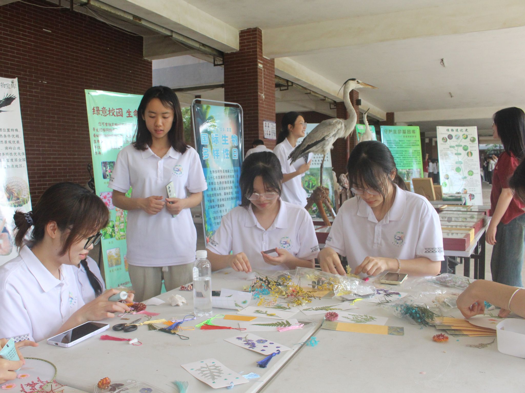 随后,基地班开展了生物多样性主题宣传活动,围绕生物多样性海报巡展、植物标本创意工坊及"植物猎人挑战赛"三大核心板块有序展开。由师生联合设计的科普海报长廊成为生物多样性知识传播的重要载体,系统且生动地展现了生物多样性保护的科学知识与重要意义;"植物猎人挑战赛"以趣味定向任务为主要形式,将知识性与趣味性有机结合,有效强化了参与者对生态系统的认知与理解。在植物标本制作环节,学生充分发挥专业优势,将标本制作的专业技法与艺术创作深度融合,创作出兼具科研价值与美学特质的标本作品。丰富的活动内容吸引了广大师生积极参与,累计完成标本作品百余件。
