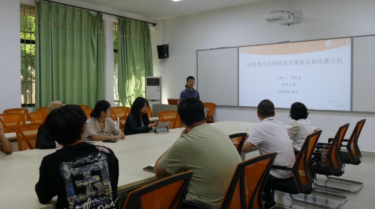 禽白血病(Avian Leukosis, AL)是一种严重影响养禽业发展的种源性疫病,特别是J亚群禽白血病病毒(ALV-J),自传入我国白鸡群体后迅速扩散至蛋鸡与黄鸡种群,造成了广泛的产业损失。讲座中,邓乔木教授从病毒的分子分型、传播路径到时空演化趋势,系统介绍了ALV-J的进化特性和流行规律。他指出,目前该病毒尚无有效疫苗和治疗药物,病毒净化是当前主要的控制手段,科学认识其传播与变异机制对于制定精准防控策略具有重要意义。