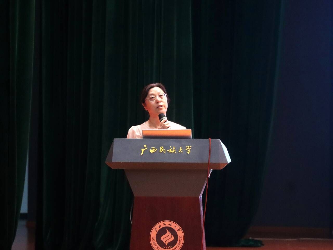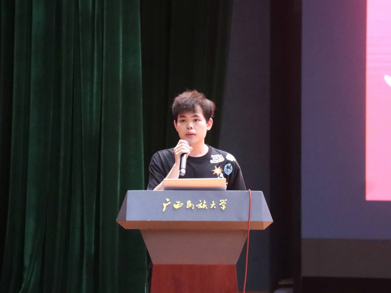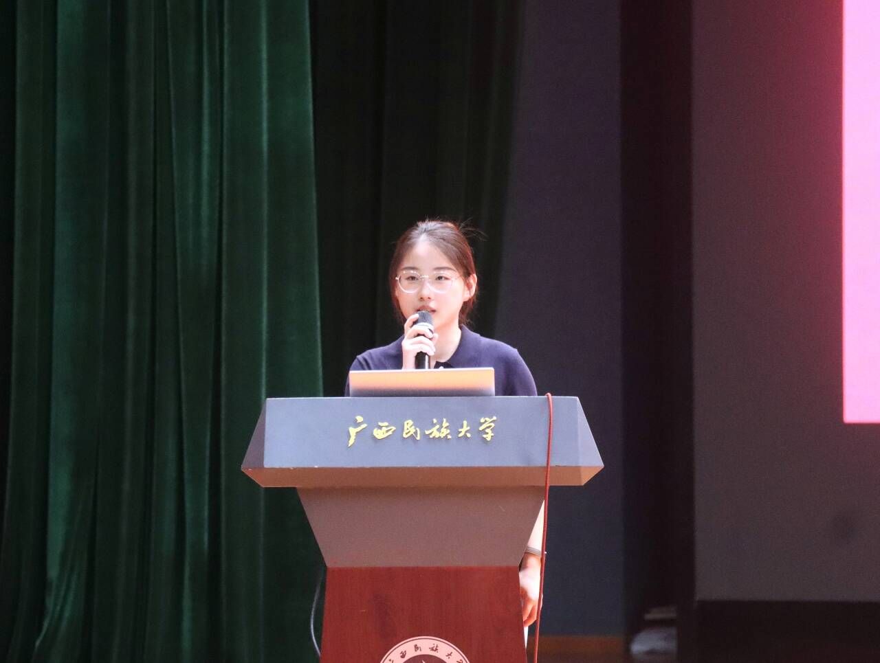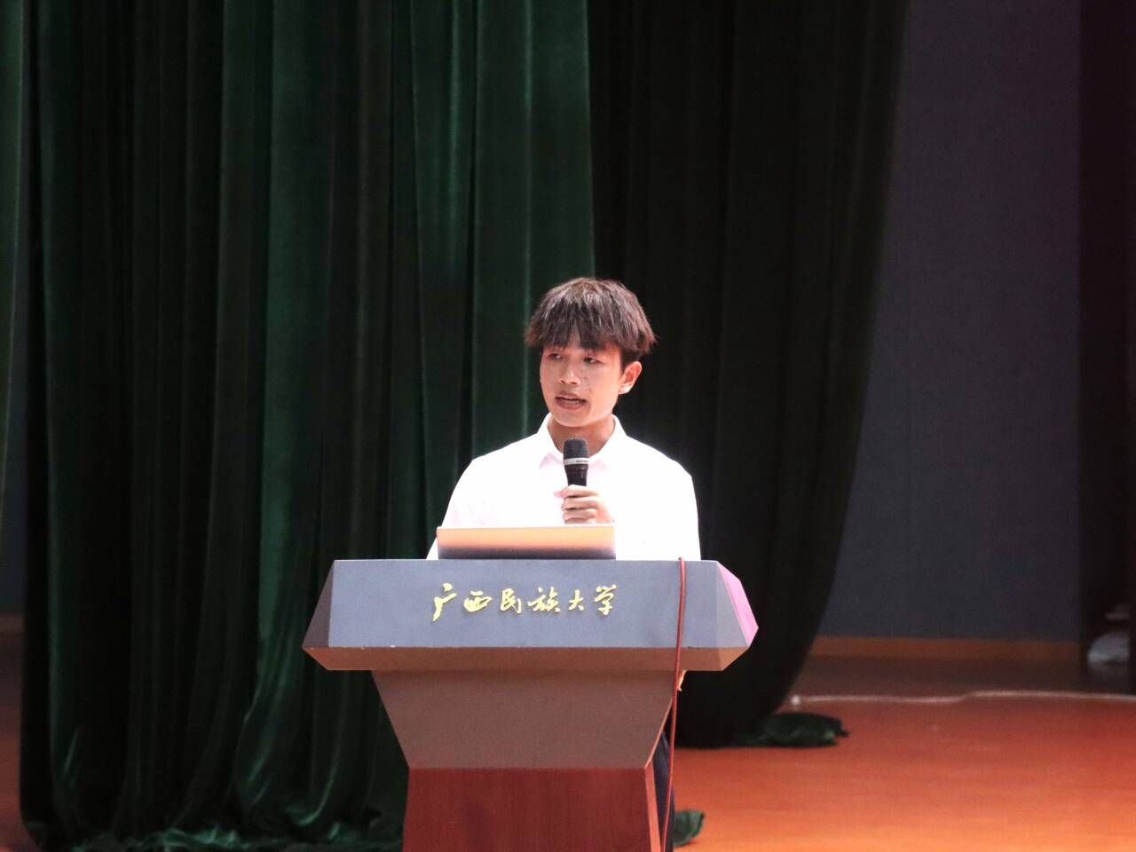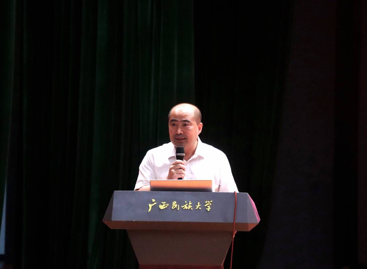 2025级海洋科学01班黄强富作为本科新生代表发言,他号召同学们立足时代需求,以“专业为根基、实干为引擎、创新为双翼”,以青春之名担起时代重任,用奋斗之笔共同书写新一代广西民族大学学子的崭新篇章!