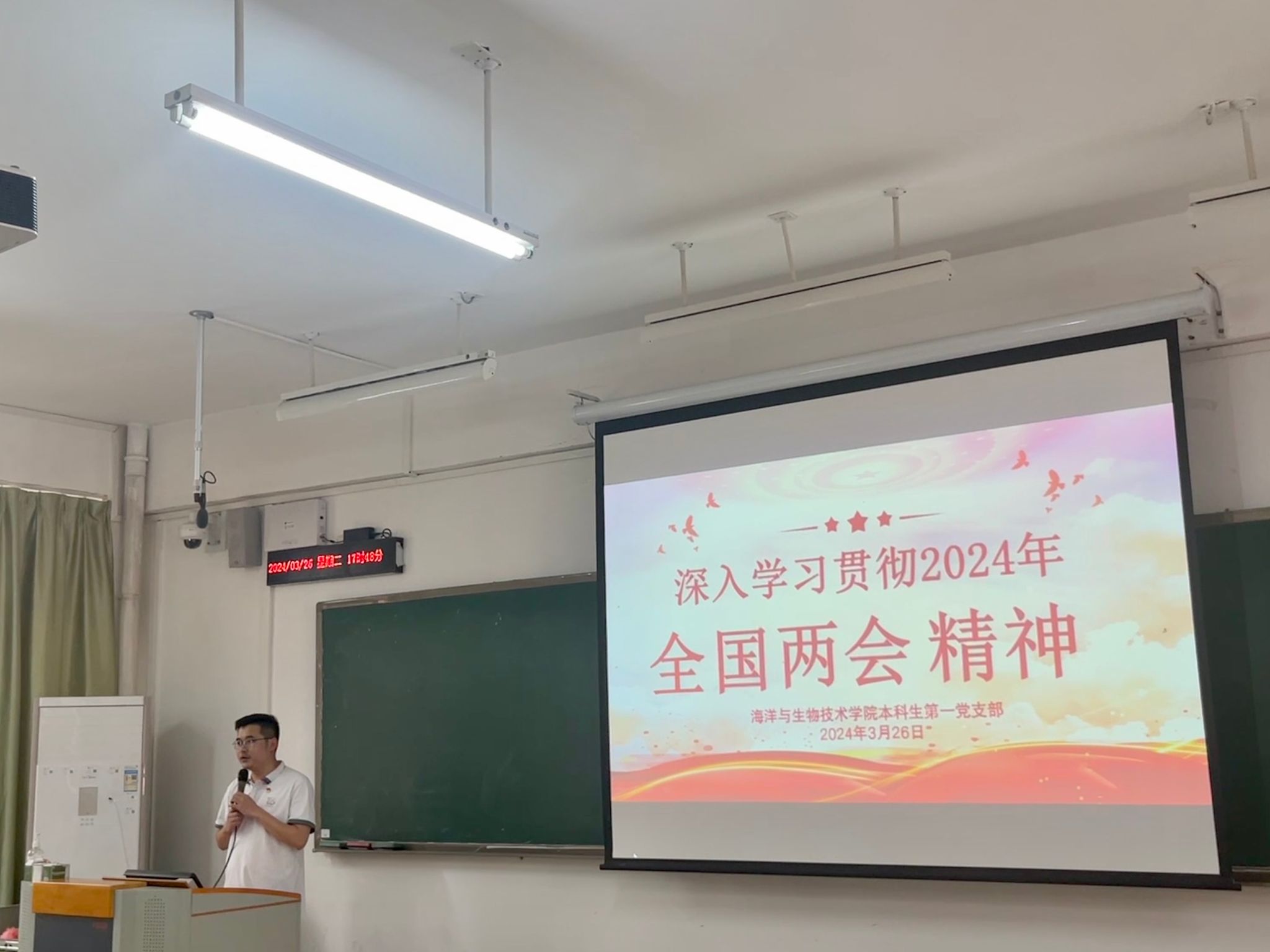 3月26日下午,fun88乐天使本科生第一党支部于明德楼508室开展学习2024年全国两会精神专题党课,本次党课由支部书记林南新讲授,支部全体党员同志及入党积极分子参加党课学习。