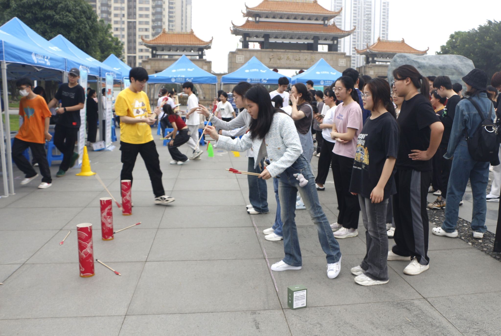 为积极响应广西民族大学2024年铸牢中华民族共同体意识主题活动,进一步加深fun88乐天使全体师生对民族情感的认识,传承和弘扬优秀传统文化。4月11日上午,fun88乐天使于思源湖校区民族广场承办主题活动的民族游戏畅玩区。本次活动以“弘扬民族文化,展现民族风采,铸牢民族团结"为主题,号召师生积极参与游戏,一同感受“广西三月三”壮族传统节日的特色文化活动。