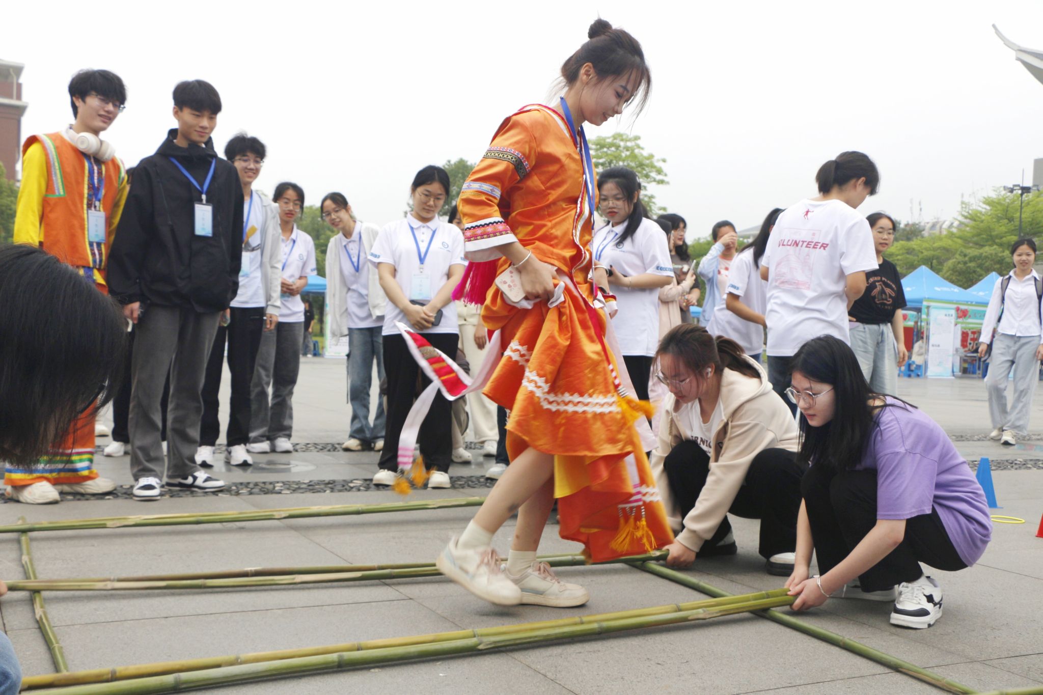 本次活动精心设计了包括捶丸、舞动竹竿、彩碟飞扬、抛圈套物、望古投壶、民族抽牌、石榴花开以及滚铁圈等八个游戏项目。活动现场,同学们根据自己的喜好自由选择游戏,与志趣相投的朋友组成团队,共同迎接各类游戏的挑战,尽享游戏带来的乐趣。此外,参与者还能通过游戏赢得兑奖券,兑换心仪的精美奖品。