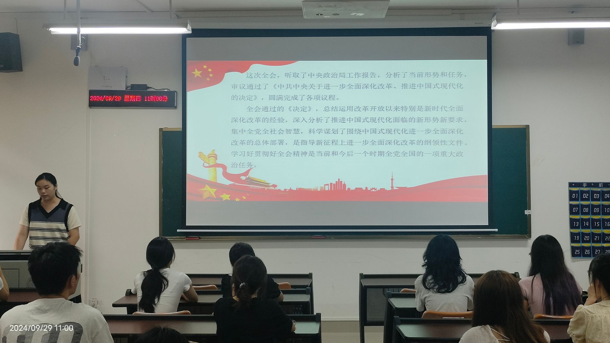 为深入学习贯彻党的二十届三中全会精神,深刻认识党的二十届三中全会的重大意义,9月29日,本科生第二党支部开展学习贯彻党的二十届三中全会精神专题党课。