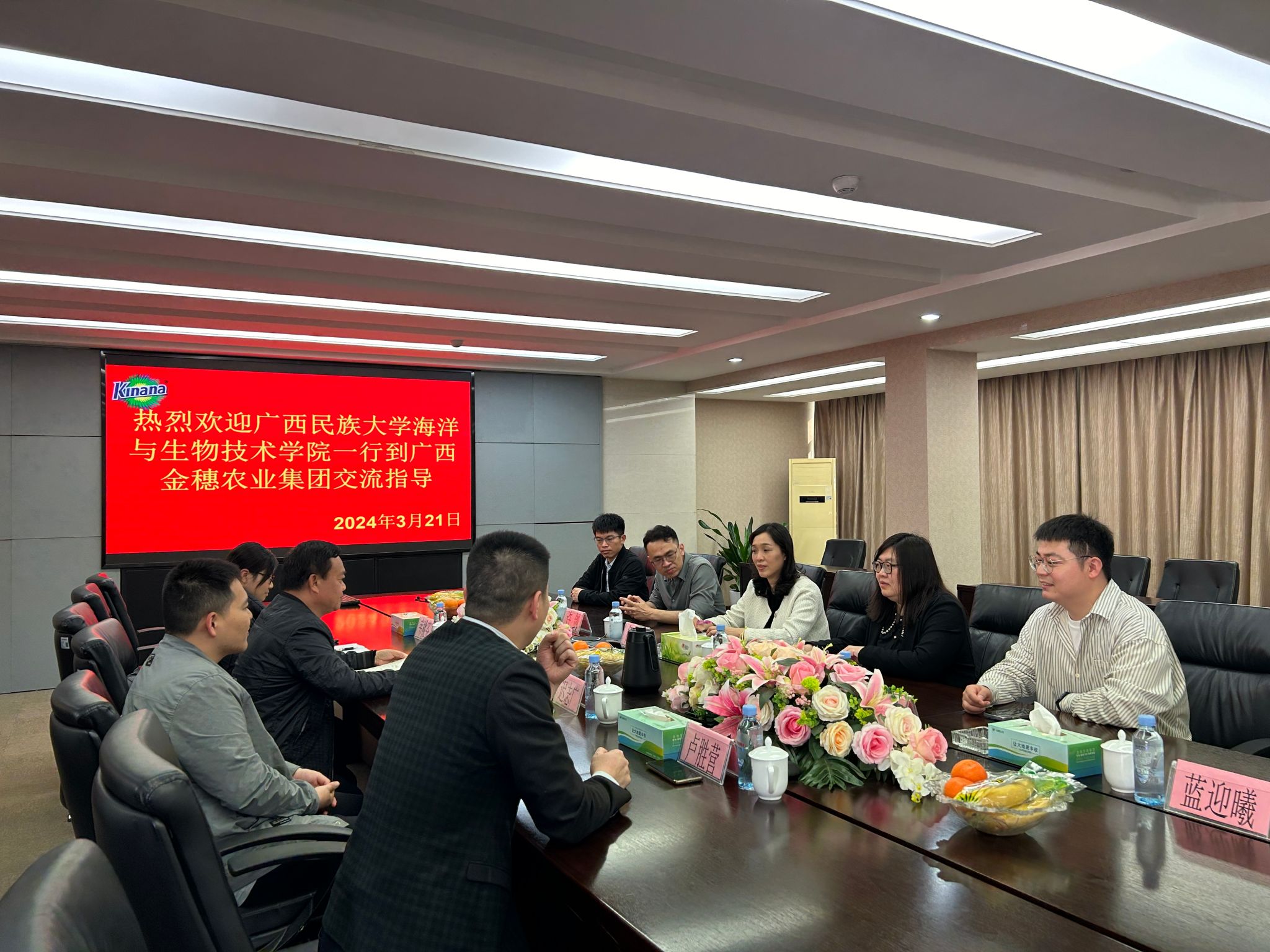 为扎实落实学校关于开展访企拓岗活动的工作要求,进一步调查企业对fun88乐天使人才培养的建议,开拓校企合作新局面。3月21日下午,学院党委副书记门媛媛,副院长张琴,许剑、吴仁智、刘永强、蓝迎曦老师一行前往广西金穗农业集团有限公司(以下简称“金穗集团”)开展访企拓岗专项行动。金穗集团党总支部副书记卢电坤、金穗生态集团研究院常务副院长迟志广、金穗集团人力行政中心经理卢胜营和主管韦桃芬参加座谈。