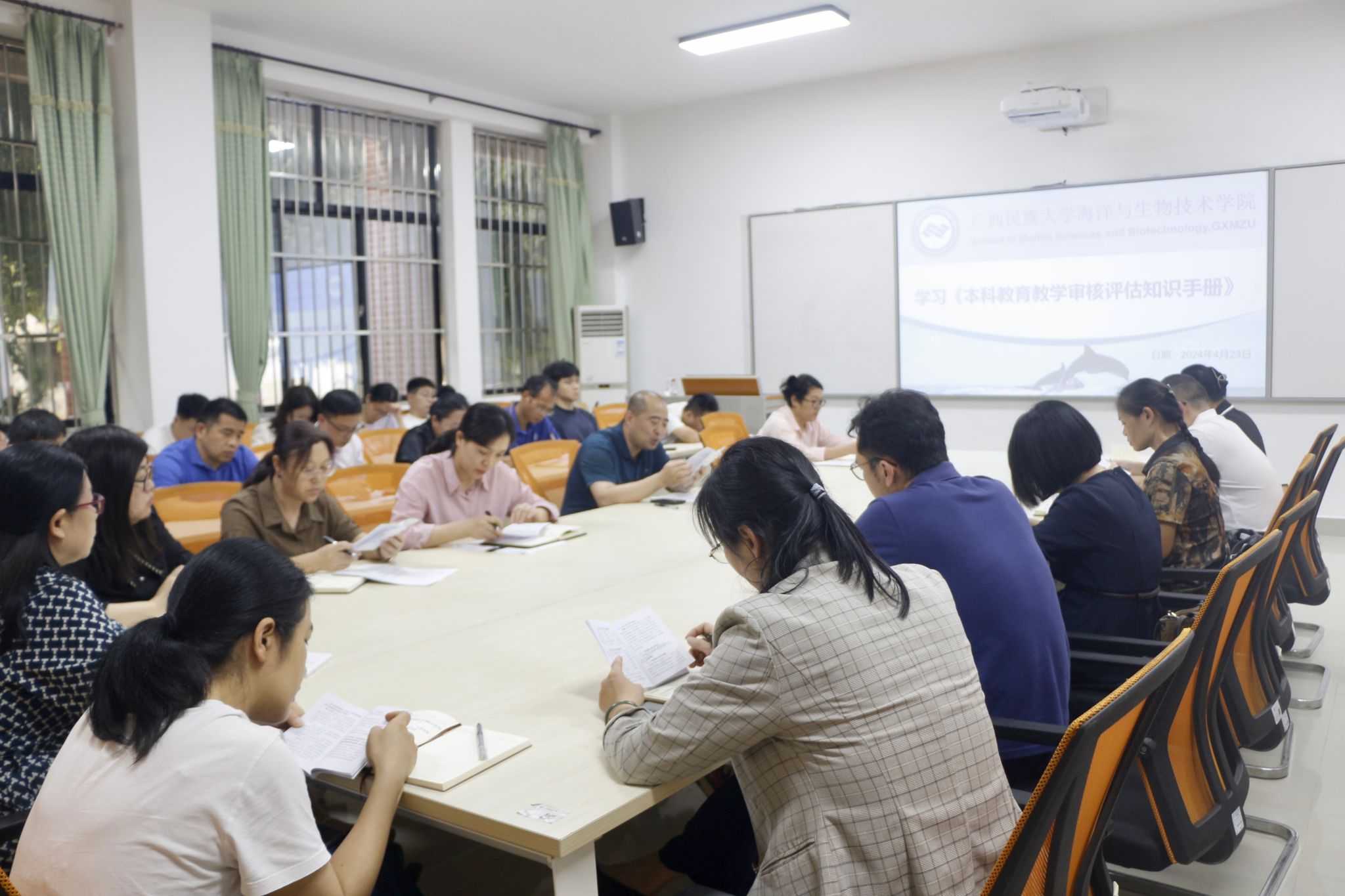 会上,刘红全指出,学校即将迎来本科教育教学审核评估工作,全院教师要认真学习《本科教育教学审核评估知识手册》,做好本科教育教学审核评估的各项工作,详细为大家解读了学校的学校概况、校风校训、办学理念、办学定位等内容,强调了知识手册中的重要知识点。王一兵详细介绍了学院的基本情况、师资力量、科研平台、近年来获得的奖项及重要科研项目等基本概况,帮助全体教师充分了解此次本科教育教学审核评估工作的相关内容,加强评估工作的知识储备。