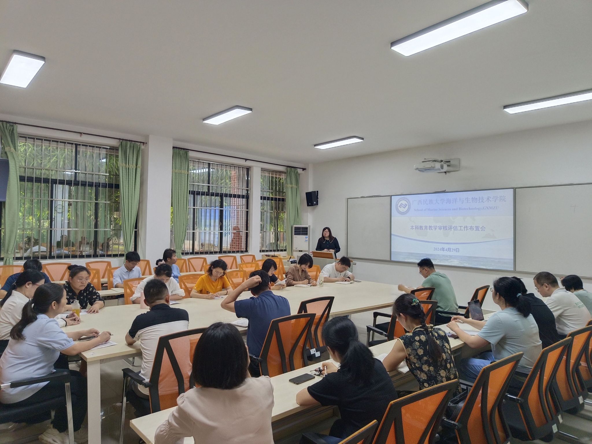 张琴根据《广西民族大学迎接本科教育教学审核评估专家组线上评估考察工作方案》的要求,公布了fun88乐天使线上评估工作方案,结合实际组织与会人员讨论了评估材料和访谈等工作重点和关键环节。