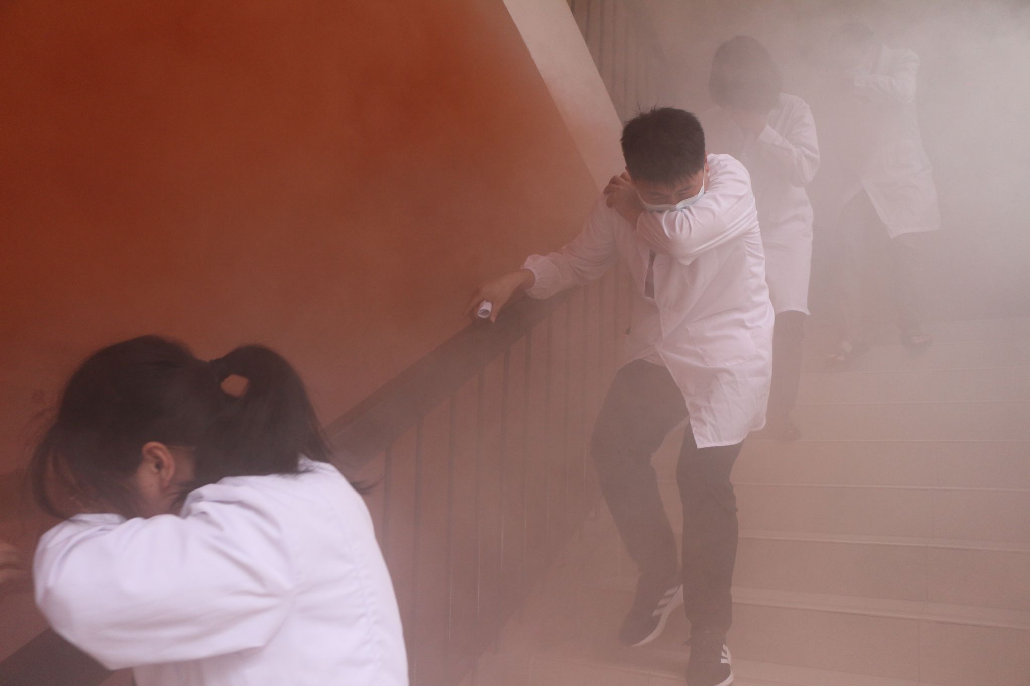 在应急疏散演练活动中,演练假设学生在扬帆楼二楼上实验课期间,突发火灾,火势迅速蔓延,浓烟四起,直接威胁到学生的生命安全并造成难以估量的财产损失。随着警报声响起,学生们在教师们的引导下,根据应急指示灯指引,用手肘的衣袖遮住口鼻,采取扶墙、弯腰低蹲的姿势快速离开现场。整个演练过程中,fun88乐天使学子保持冷静,行动迅速、有条不紊地按照疏散路线撤离至指定的安全区域,充分展示了他们出色的应急反应能力。