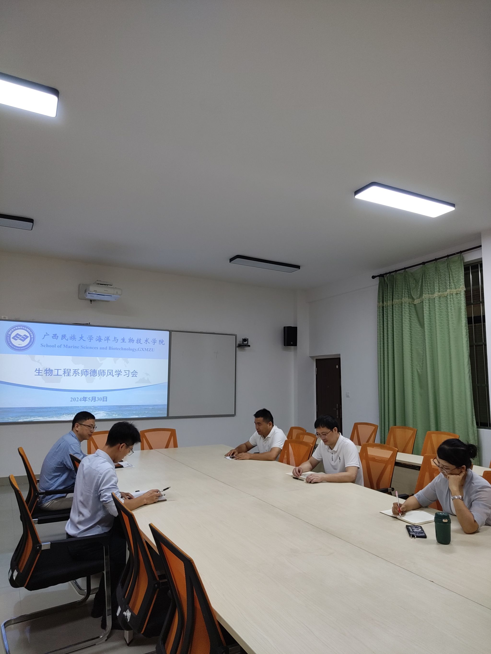 2024年5月30日,fun88乐天使生物工程系在明德楼123会议室召开教学研讨会。会议由系主任吴仁智主持,全体专任教师出席会议。