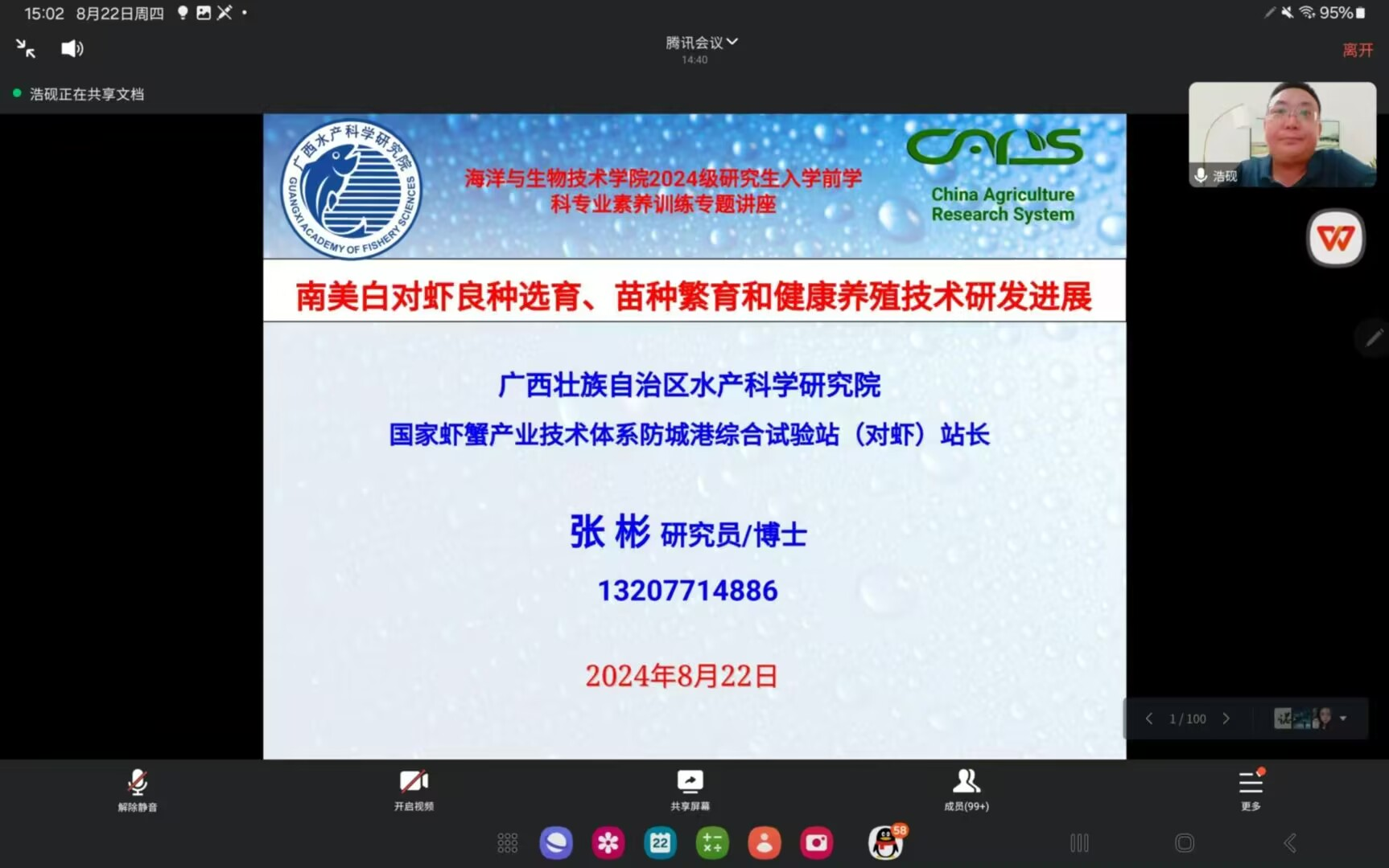8月22日 | 南美白对虾良种高健康生态繁育技术研发进展 | 张 彬 | 广西水产科学研究院 |